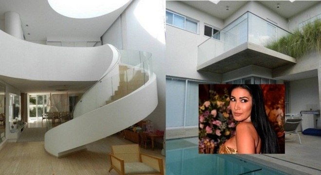 O imóvel de quase 500 metros quadrados conta com quatro suítes, sala com dois ambientes, piscina com aquecimento solar, banheira, sauna e sacada e está avaliado em R$ 3 milhões. O pé direito da residência impressiona. É gigante. A mansão, que fica num condomínio fechado, também está disponível para locação, com o aluguel na casa de R$ 20 mil mensais.